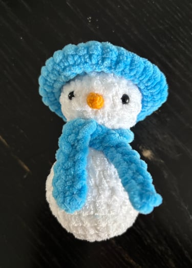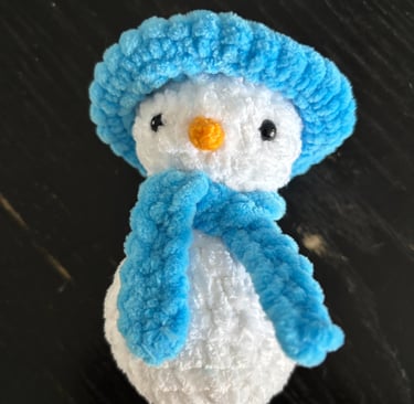 Het lijkt me super om zelf knuffels te gaan ontwerpen, mijn hoofd loopt ook over van ideeën. Maar daar blijft het dan steeds bij. Ken je dat, veel ideeën hebben en de voorpret om dit alles te bedenken, maar dan uiteindelijk niet concreet iets maken? Ik loop al maanden rond met het idee om zelf knuffels te gaan ontwerpen, lijkt me zo leuk! Maar waar te beginnen? Wat ga ik dan maken? Hoe moet ik dat aanpakken? Kan ik dat wel? Het wordt vast niets, het is veel te ingewikkeld voor me. Maar het lijkt me zo leuk! Vorige week heb ik dan toch eindelijke de stoute schoenen aangetrokken en ik ben gewoon maar ergens begonnen. Want al die gedachten helpen me niet en houden me alleen maar tegen om te leren hoe ik zoiets moet aanpakken. Ik merk het wel! En zie hier het resultaat, een simpel, maar schattig sneeuwpopje. Stiekem ben ik er best trots op... Nu nog een paar gaan maken en netjes uitschrijven welke stappen ik zet, met foto's. En dan mag hij op mijn website, als pdf patroon, en als reeds gemaakte knuffel.